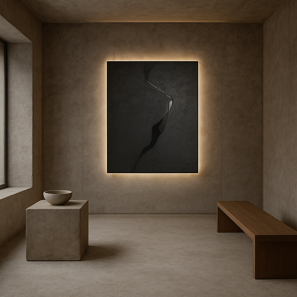 My art is rooted in the philosophy that beauty often emerges from what is fragile, imperfect, and unseen. Through black-on-black textures, resin, and mixed media, I explore the depth and quiet strength that comes from shadow where mystery and possibility coexist. This shop is where I share original works inspired by wabi-sabi and minimalist traditions, each piece created to spark reflection and bring a sense of balance to modern spaces. Every painting is one-of-a-kind, handmade with care, and designed to transform the energy of a room not just as decor, but as a meditation on life, resilience, and growth. Thank you for being here and supporting original art. It means the world to know my work will live on as part of your story, too.
